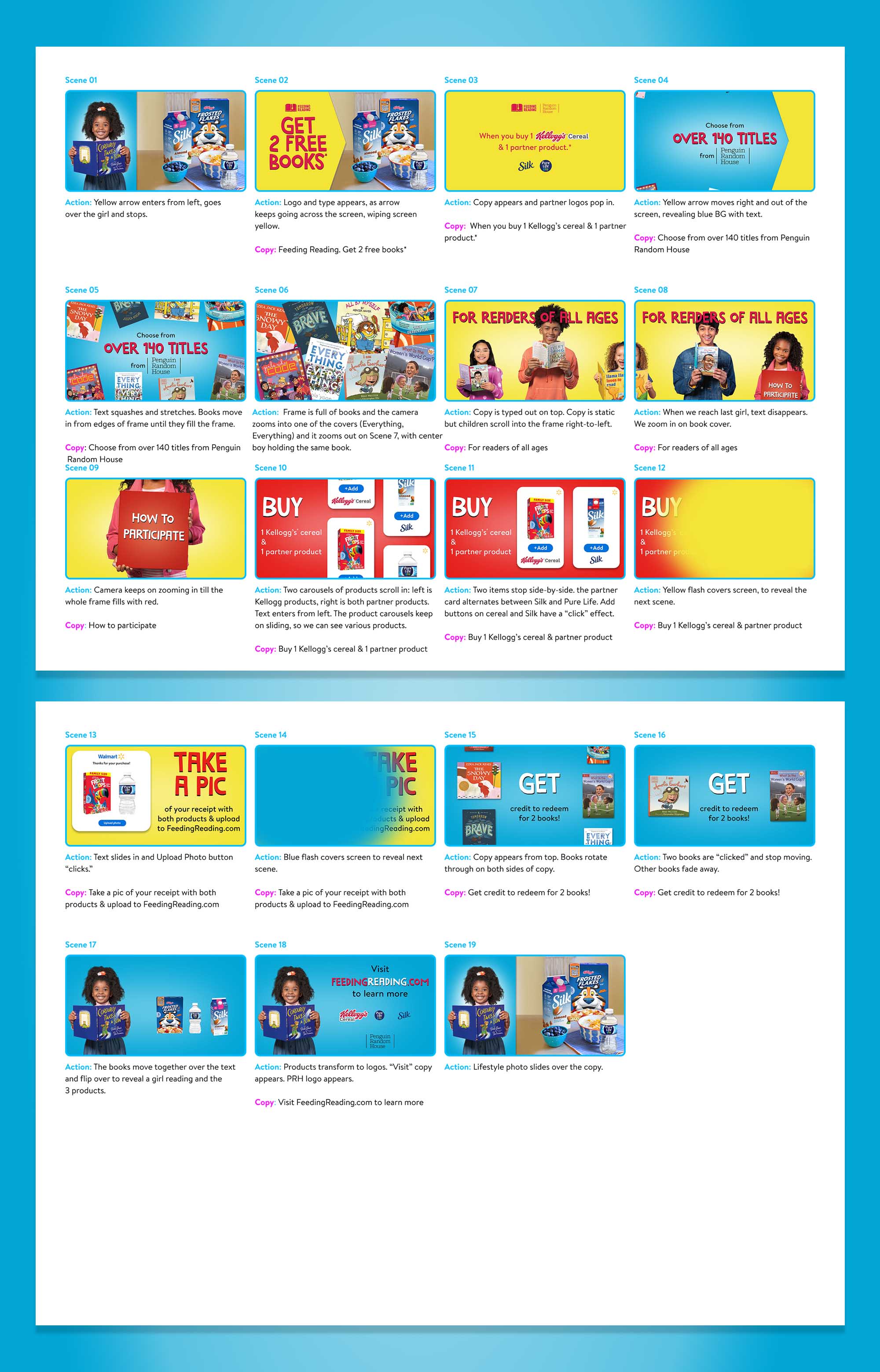 Feeding Reading is an annual program where parents can submit grocery receipts for free books. In past years, the General Mills team had provided a video file describing the program. This year, they wanted a new video that matched the updated branding I was designing for their page on the Walmart site.